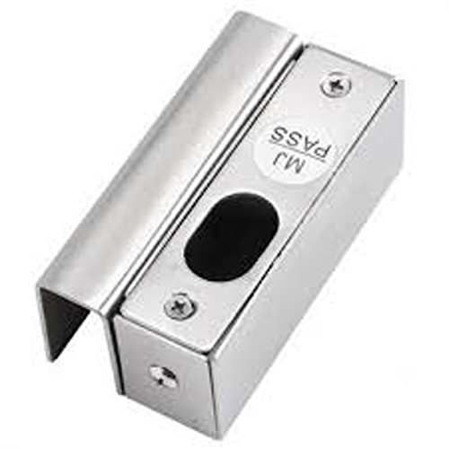 A sturdy anodized‑aluminum Z‑shaped bracket (~0.32 kg, ~100–209 mm length) purpose-built for bolt-type electric locks on frameless glass doors (8–12 mm thick). It ensures precise alignment and reliable locking in frameless installations.