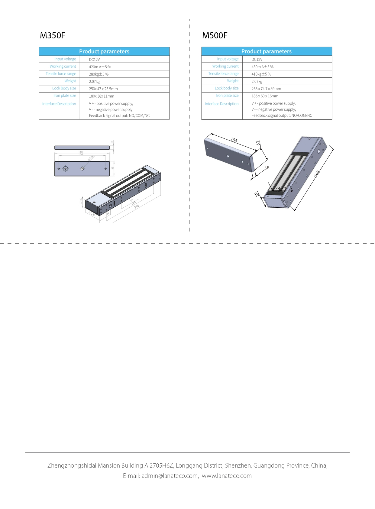 HOLDING FORCE: 280 KG • WORKING VOLTAGE: DC12V/24V input • SIZE: 253*25*48mm • WEIGHT: 1.97kg • Category: Magnetic Lock • Sub category:Magnetic Lock